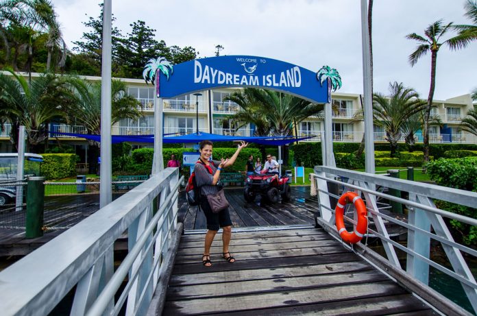 A szigetek között rendszeres komp és hajójáratok közlekednek, az utazási irodák különböző utazási programlehetőségeket, kedvezményeket, kínálnak. Nekünk itt egy napunk van, így befizetünk egy 1 napos túrára: kivittek a Whiteheaven Beach-re, ahol strandolhattunk 2-3 órát, majd a Daydream szigeten töltöttük a délutánt. Ezt a programot még az érkezésünk délutánján lefoglaljuk Airlie Beachen, majd másnap korán indult is a hajónk. Szakadó esőben. Hatalmas hullámok között. Ködben.