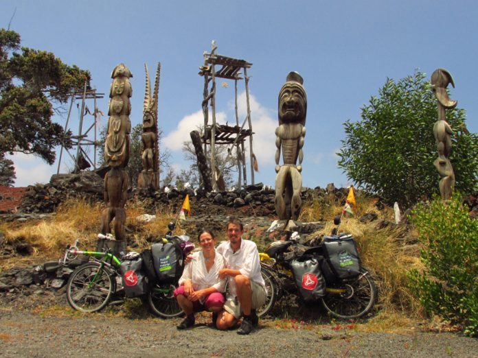 Házassági évfordulójukat Hawaii Nagy Szigetén, szó szerint a fellegekben töltötték, felkerekeztek ugyanis a Mauna Kea nevű vulkánra. „Este 10 órakor indultunk, egész éjjel bicikliztünk, hogy másnap délre fent legyünk a 2800 méter magas látogatóközpontban. Innen már csak egy hátizsákkal, gyalog folytattuk, hogy naplementére fent legyünk a 4207 méter magas csúcson, amit, ha nem a tengerszinttől, hanem a hegy lábától számolunk, akkor a világ legmagasabb hegyének tartanak. Így mérve 10100 méter magas, persze ebből közel hat kilométer a tengerfelszín alatt található. Odafent állni messze a felhők felett, a Csendes-óceán közepén, felejthetetlen élmény volt!” – lelkendezett a legújabb élményükről Árpi.