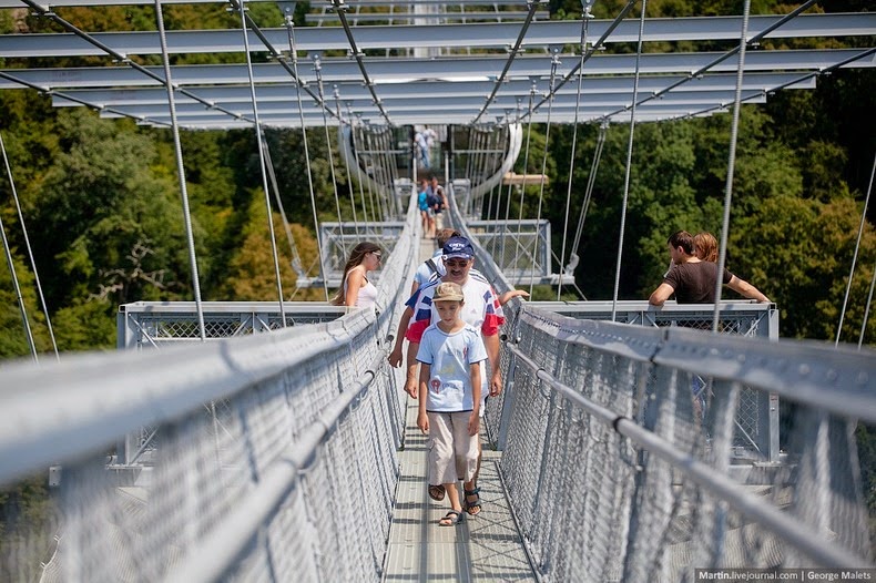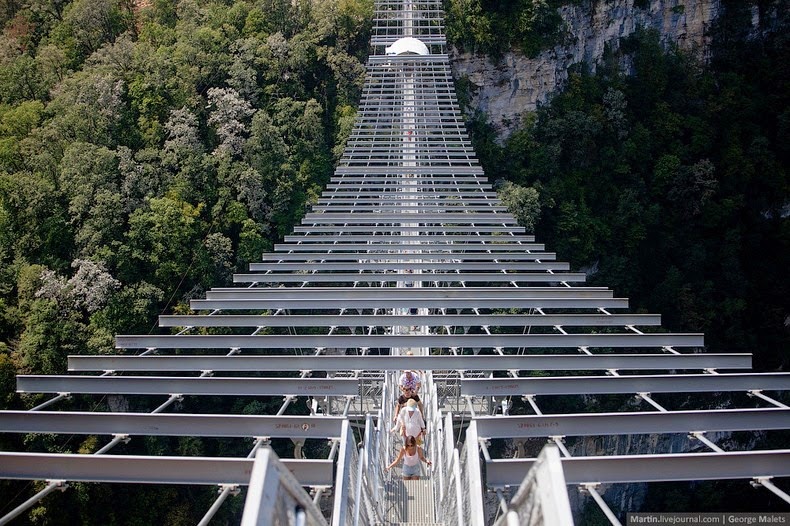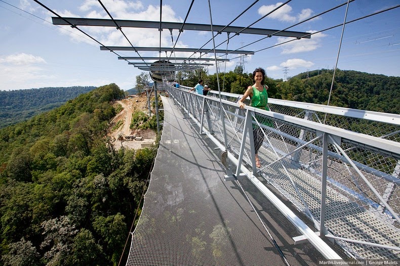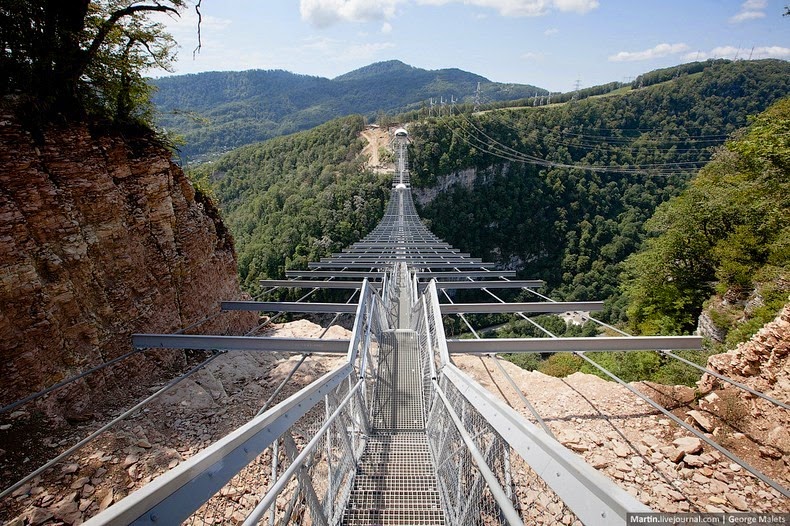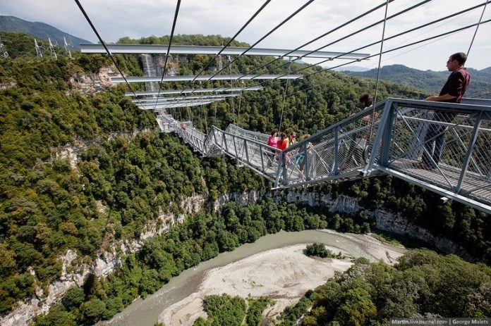 A világ leghosszabb gyalogos függőhídját nyitották meg idén nyáron az oroszországi Szocsi Nemzeti Parkban. A Nemzeti Park 520 méter hosszú hídja 218 méterrel épült a festői szurdok fölé, lélegzetelállító kilátás nyújtva a hegyekre és az alatta hömpölygő folyóra. A Sochi Skypark hídját új-zélandi mérnökök bevonásával és két évig építették, 740 tonna acél és 2000 köbméter beton felhasználásával. A hidat úgy tervezték, hogy ellenálljon akár egy a 9-es erősségű földrengésnek és egyidejűleg akár 3000 ember is tartózkodhasson rajta.