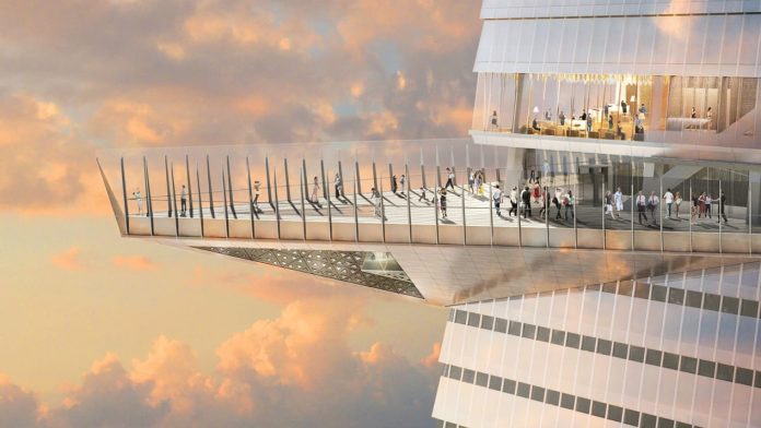 A lift mindössze 52 másodperc alatt repíti a látogatókat a 100. emeleten lévő közel 700 négyzetméteres szabadtéri kilátópontra, melynek üvegből készült alján és korlátain keresztül madártávlatból szemlélhetjük a várost. Az Edge további 10 000 négyzetméterén étterem, bár és rendezvény helyszín is helyet kap.