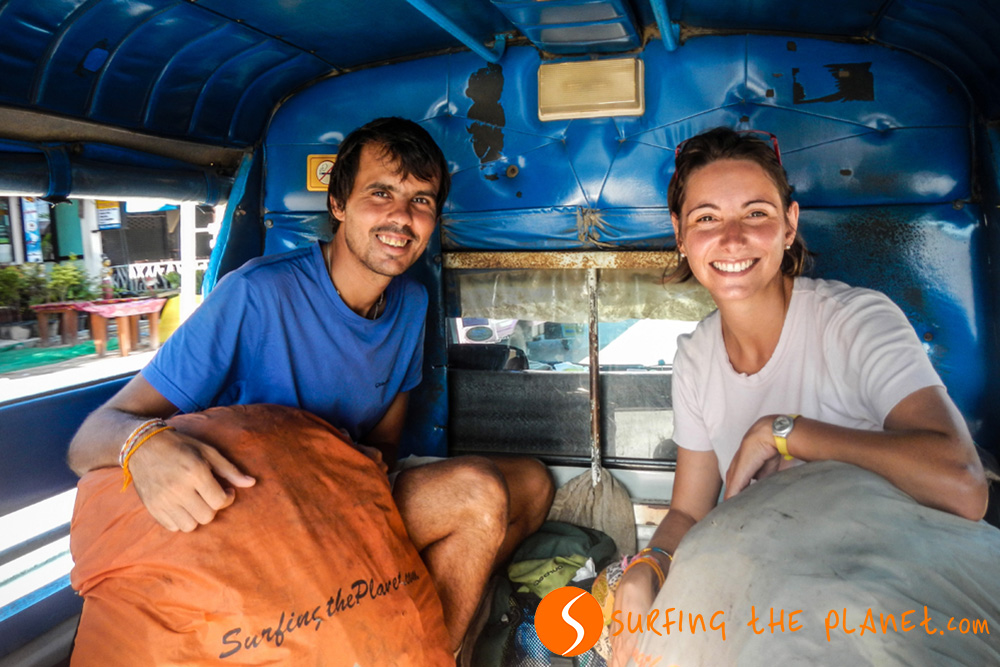 Gábor és Rachele a hátizsákkal Thaiföldön