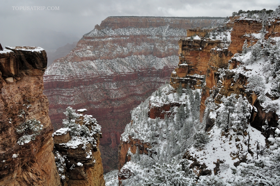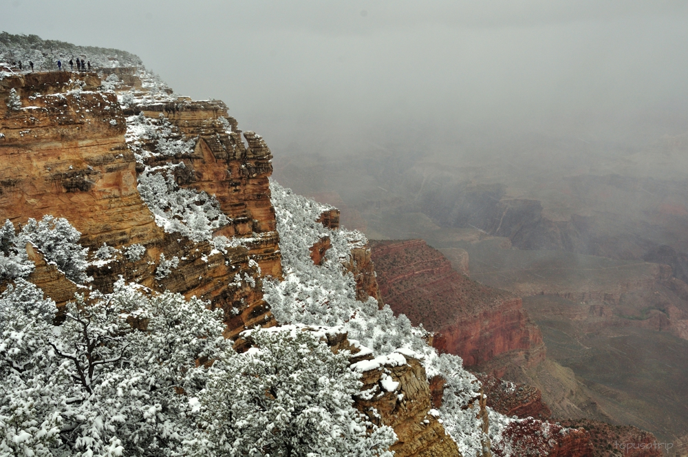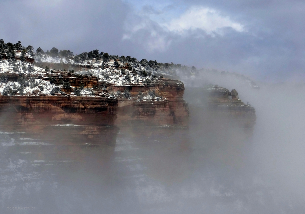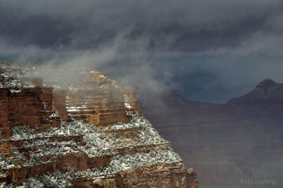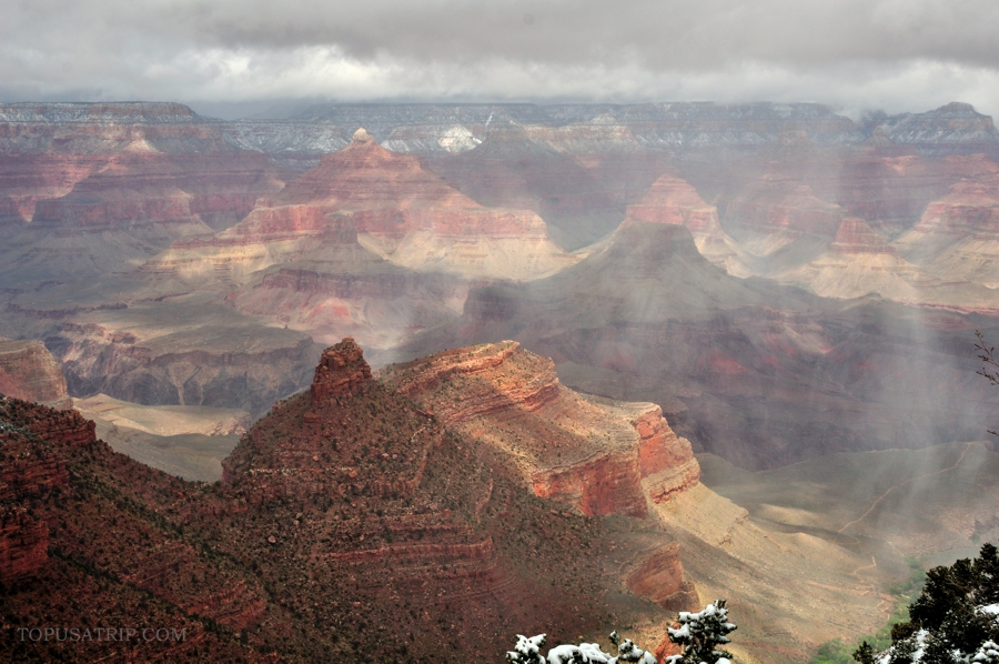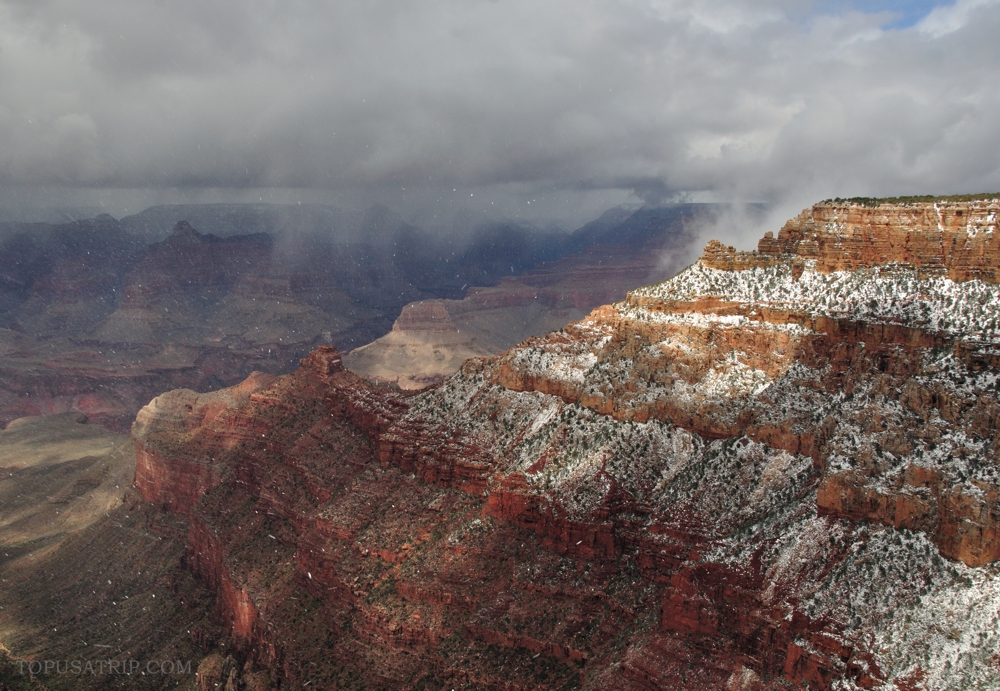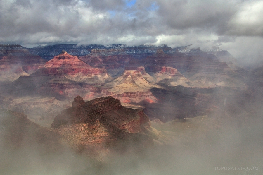 A TopUSATrip csapata egy áprilisi napon autózott el a világ leghíresebb kanyonjához, ahol a következő látvány fogadta őket. Ha kíváncsiak vagytok az kirándulás további részleteire olvassátok el a Volt egyszer egy vadnyugat – Grand Canyon című cikket.