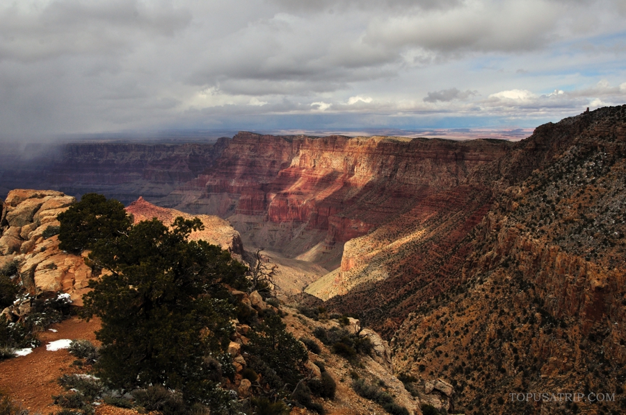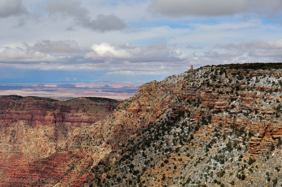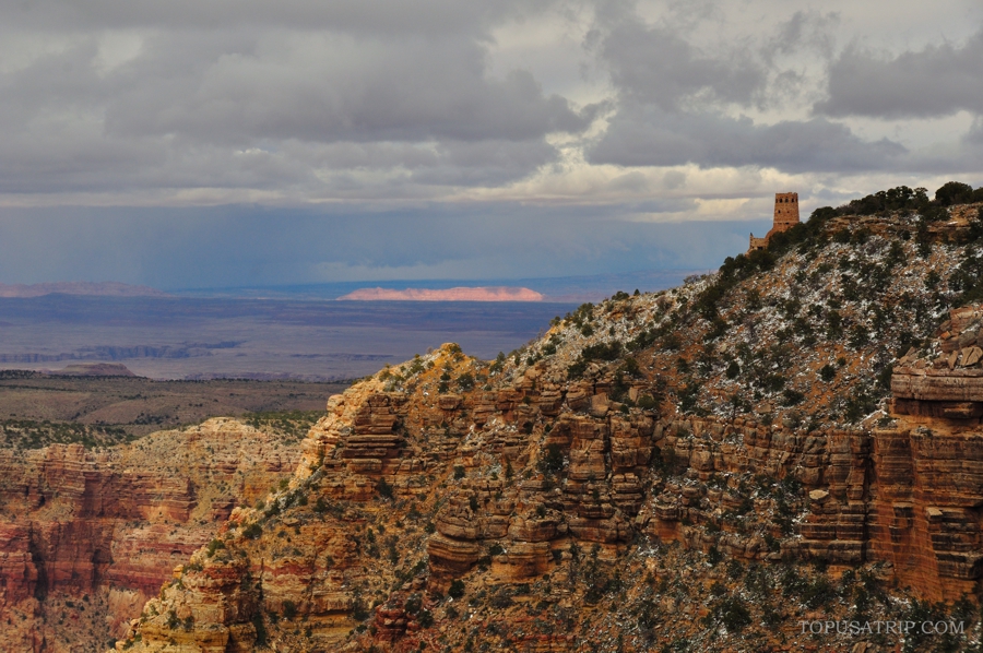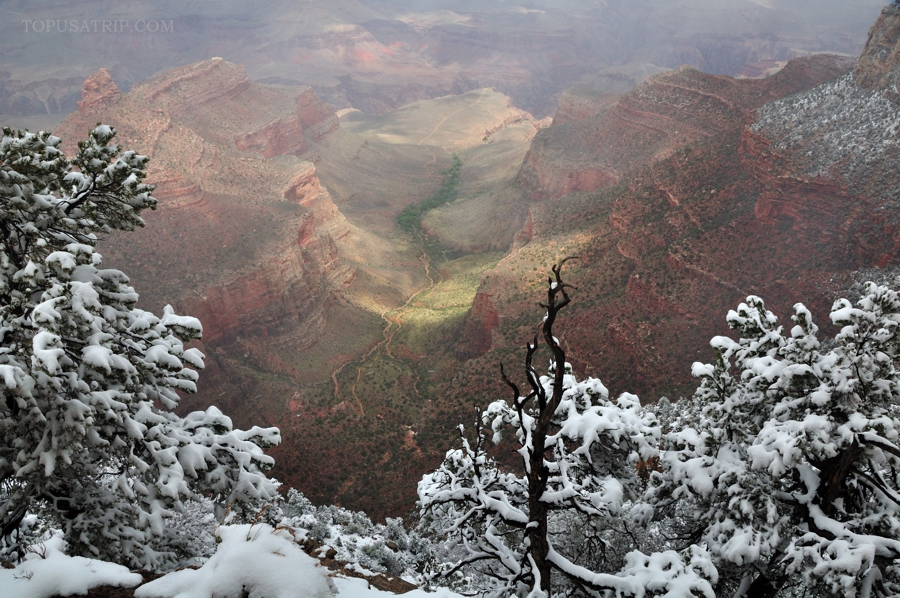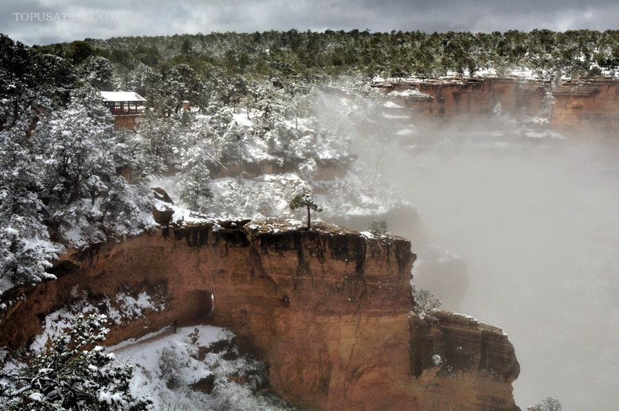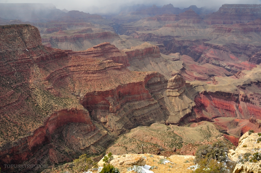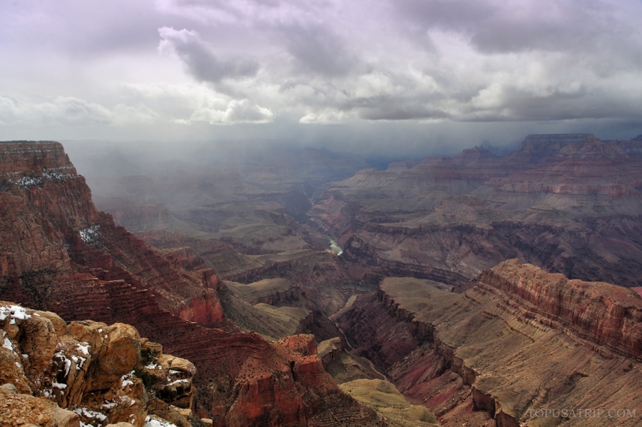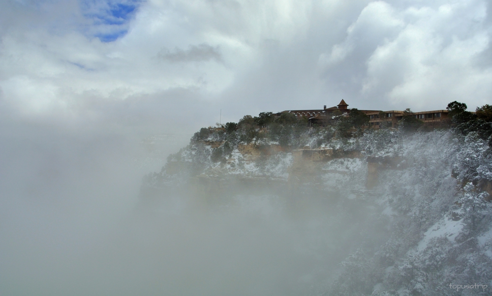 A TopUSATrip csapata egy áprilisi napon autózott el a világ leghíresebb kanyonjához, ahol a következő látvány fogadta őket. Ha kíváncsiak vagytok az kirándulás további részleteire olvassátok el a Volt egyszer egy vadnyugat – Grand Canyon című cikket.