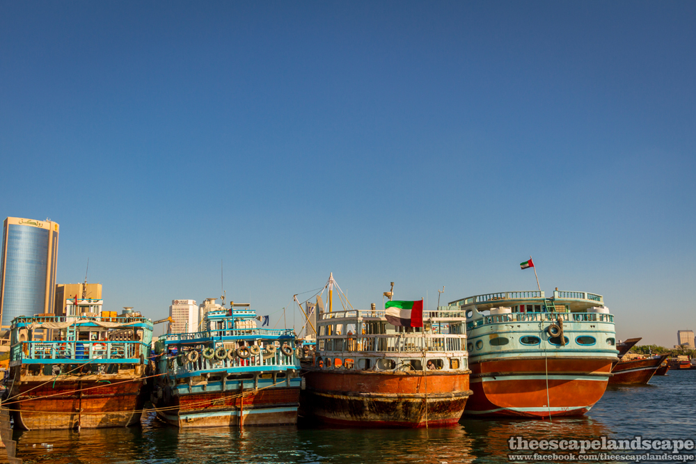 Kora délutánra eljutottunk a Dubai Creekbe. Ez a (kivételesen) természetes csatorna volt az Indiából és a Kelet-Afrikából érkező hajók végállomása. Ma a nagyobb hajók már nem úszhatnak be a csatornába.