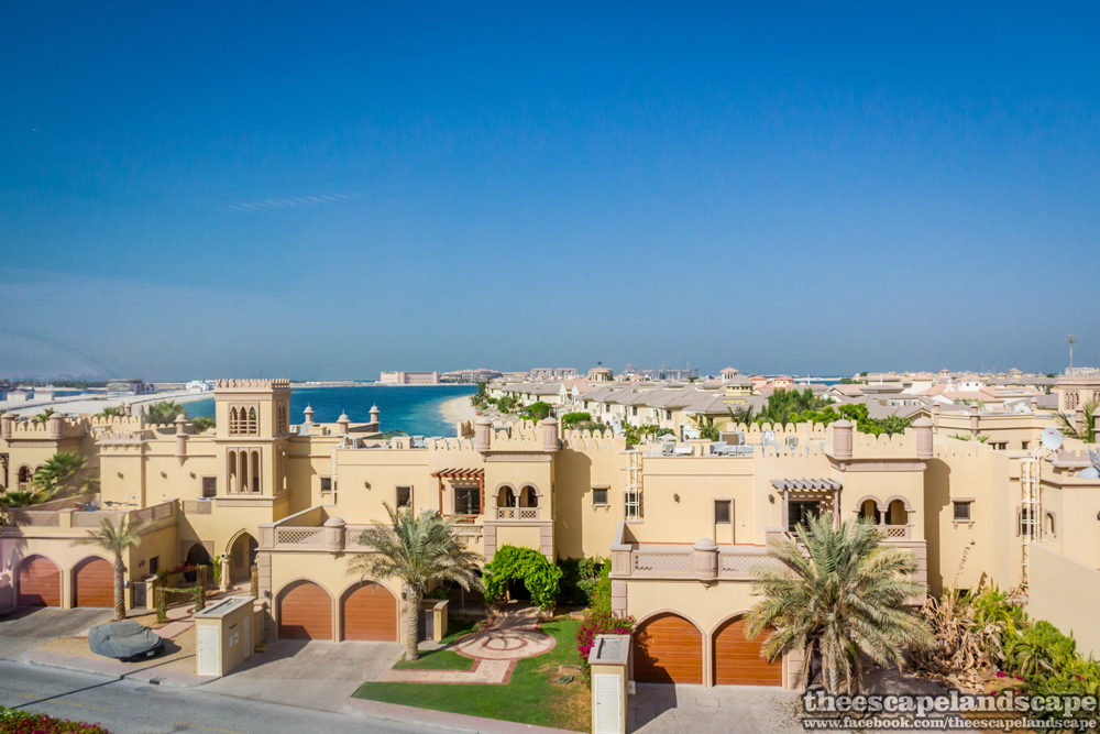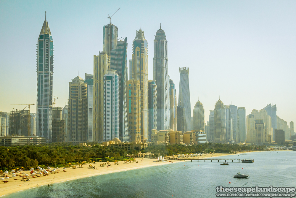 Útközben láthatjuk a pálma „ágait”. A mesterséges sziget egy nagyszabású terv részeként született meg. Az eredeti terv szerint három ilyen szigetet építettek volna az Arab-öbölbe, melyek közül ez, a Palm Jumeriah lett volna a legkisebb. Már ennek a szigetnek a befejezése is késett különböző technikai és pénzügyi akadályok miatt. A másik két szigetből a Palm Jebel Ali félkész állapotban volt, amikor beütött a gazdasági világválság, amely az Emírségekben is éreztette hatását. A harmadik szigetet emiatt el sem kezdték még építeni.