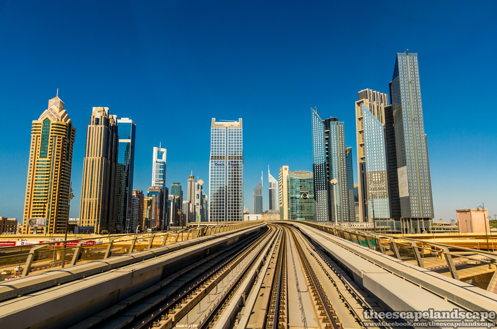 Pár perc taxi a metróig. A városnak két metróvonala van, a piros, a fő vonal, a várost kettészelő autópálya mellett fut végig. A piros vonal építése 2005-ben kezdődött és 2010-re fejeződött be teljesen. A több, mint ötven kilométer hosszú vonalat 70 perc alatt járja végig a vezető nélküli kocsisor. A metró közvetlen a Dubai Nemzetközi Repülőtérről indul és szinte minden fontosabb pont, mint például a Burj Khalifa, mellett elhalad. A vonal majdnem 860 milliárd forintból épült és naponta több, mint 377.000 utas használja. A metró egyébként nagyon olcsó. Távolság alapú jegyrendszert használ, ha valamiért végig kell mennünk az egész vonalon (például a repülőtérre megyünk a város túlfelén található marinabeli szállásunkról, ami majdnem annyi, mint a Budapest – Székesfehérvár távolság), akkor a maximális 5,8 dirhamot kell fizetnünk, ami nagyjából 430 Ft.