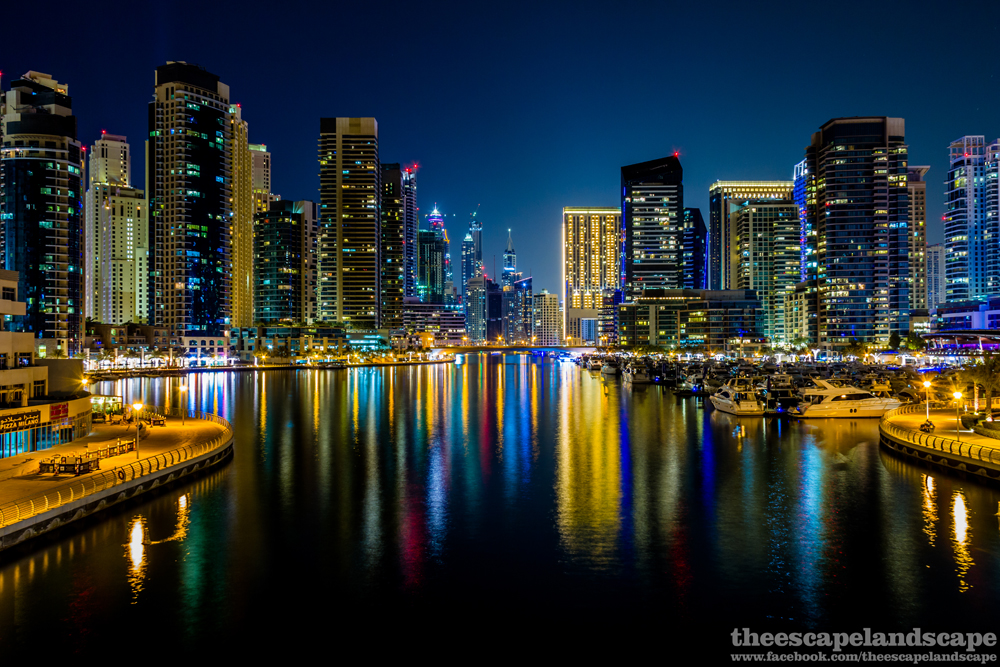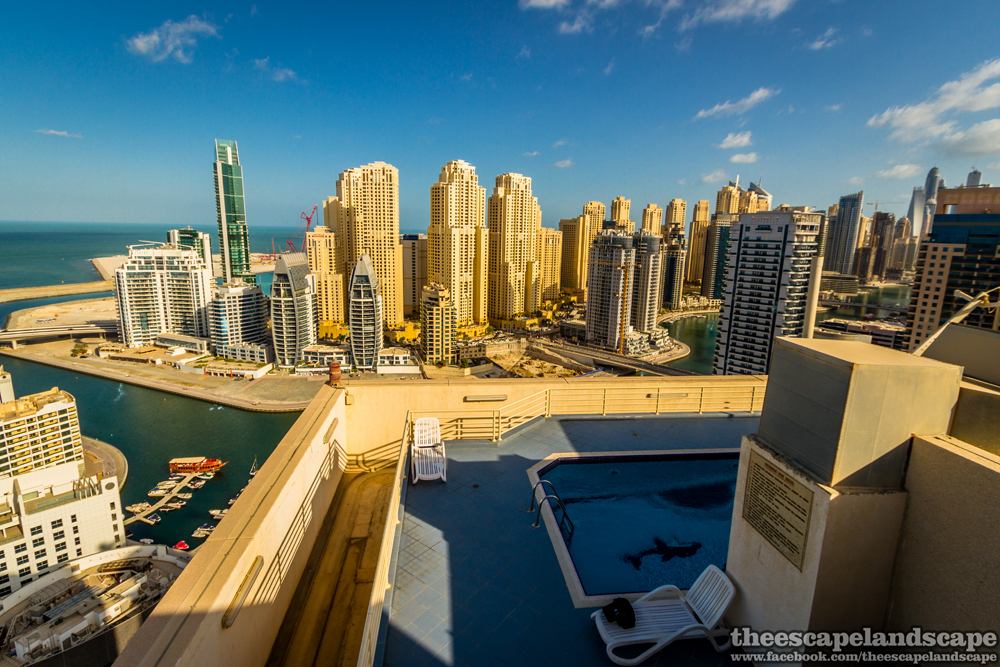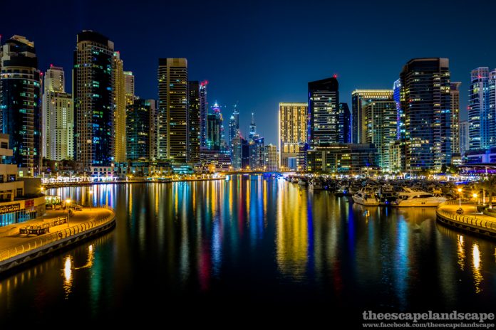 Hajnalodik a Dubai Marinában, a város egyik legfelkapottabb és legdinamikusabban épülő negyedében. Az egész kikötő mesterséges, az építkezések 2003-as megkezdése előtt itt csak sivatag volt.