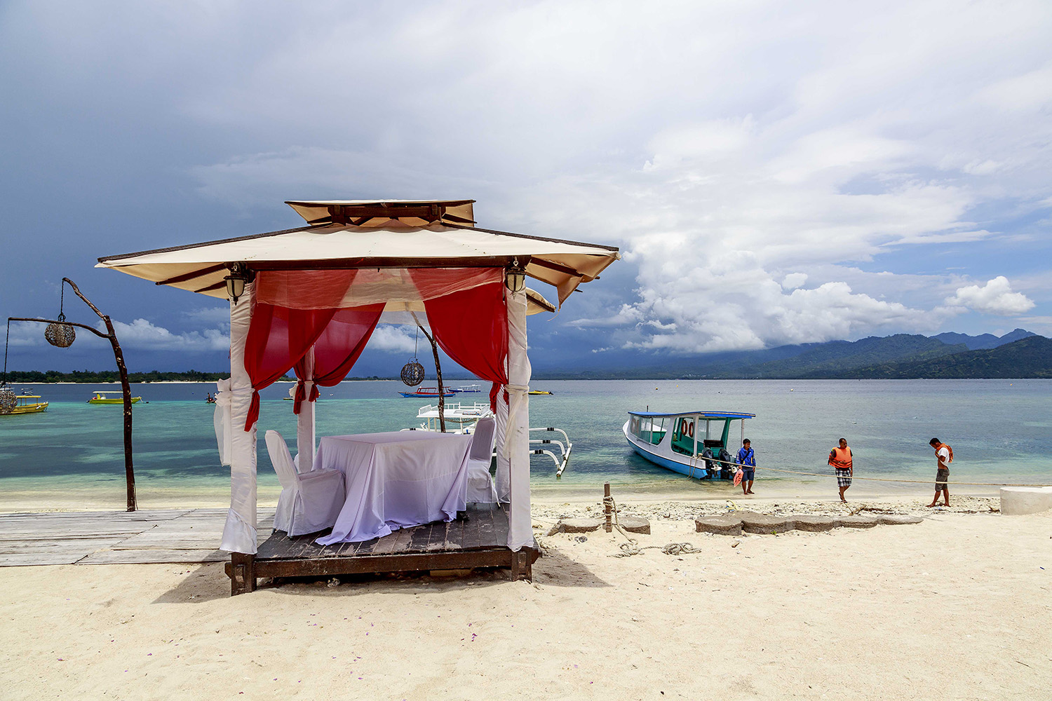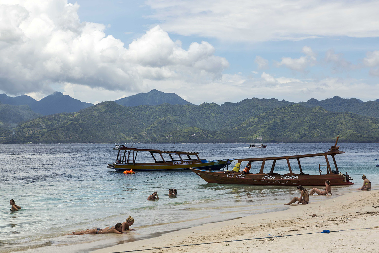 Gili-szigetek tökéletes hely a búvárkodásra, igazi búvárparadicsom és a mérföldhosszú fehérhomokos strandok ideálisak a gondtalan nyaraláshoz, kikapcsolódáshoz. Én ez alkalommal csak Gili Trawangan-t jártam be, ami a legnagyobb a 3 sziget közül, de ez is rendkívül pici. Biciklivel kényelmes tempóban körülbelül 30-40 perc alatt körbeérhetünk. A hajókikötőnél van a sziget központja tele éttermekkel kisebb nagyobb szálláshelyekkel és szórakozóhelyekkel. Gili Trawanganon mivel nincsenek rendőrök ezért amolyan “drog turizmus” is jelen van ami rendkívül furcsa ha az indonéz drogpolitikát nézzük, mert az ország bármely más részén nagyon keményen büntetnek mindent. Ebből kifolyólag itt nagyon sok a fiatal turista, akik úgymond bulizni jönnek erre a szigetre, de még így is rendkívül csendes és nyugodt a sziget nagy része. Gili Air és Gili Menor pedig még inkább a nyugalom szigetei, amelyek főleg a családos és idősebb emberek körében kedveltek. Igazi paradicsomi környezet mindhárom sziget és ha bármikor unatkozunk az egyiken akkor pillanatok alatt átmehetünk a másikra, és azokat is rendesen szemügyre vehetjük.