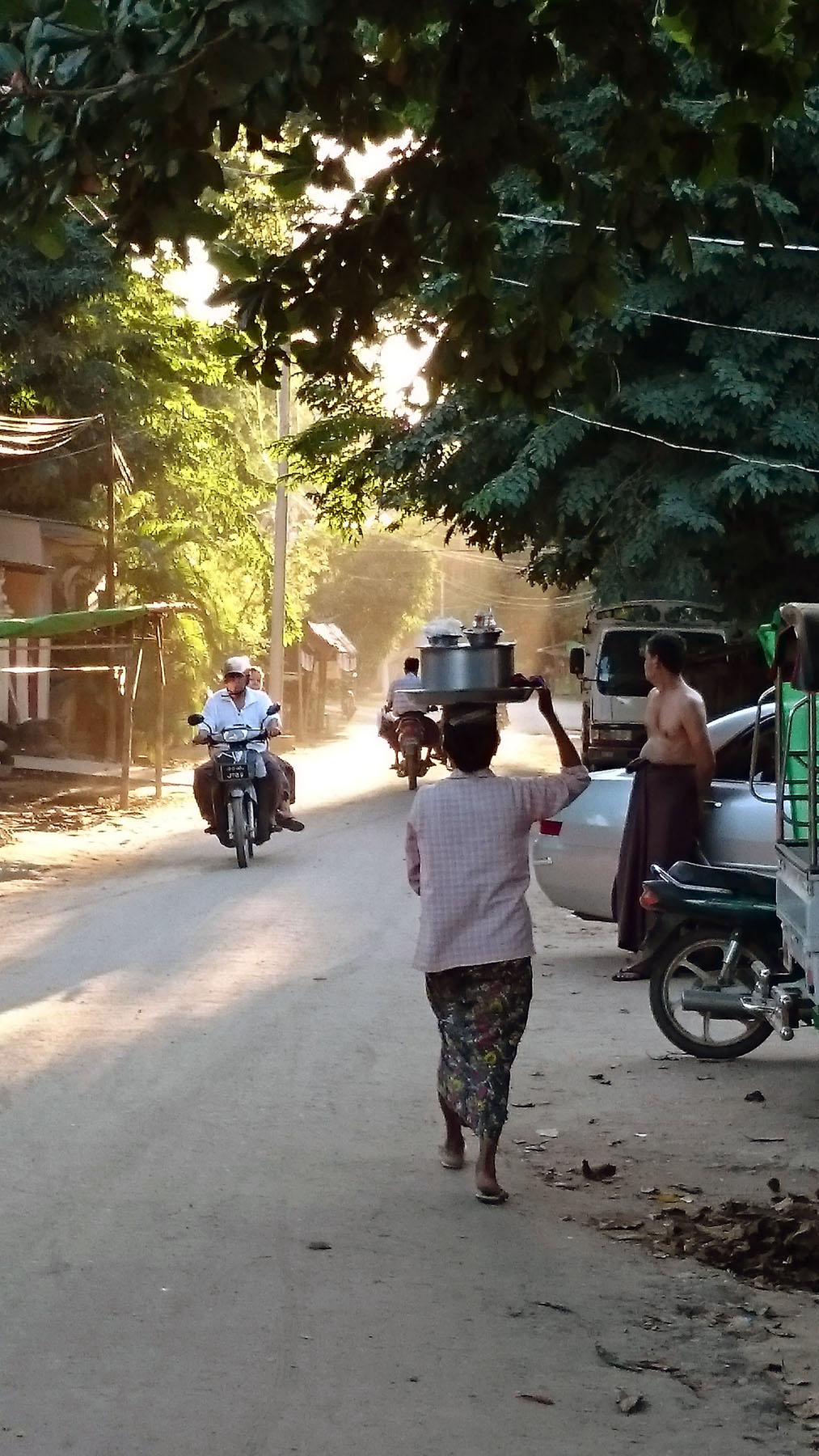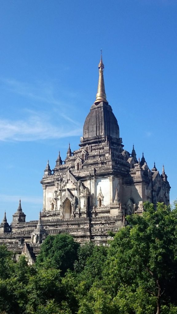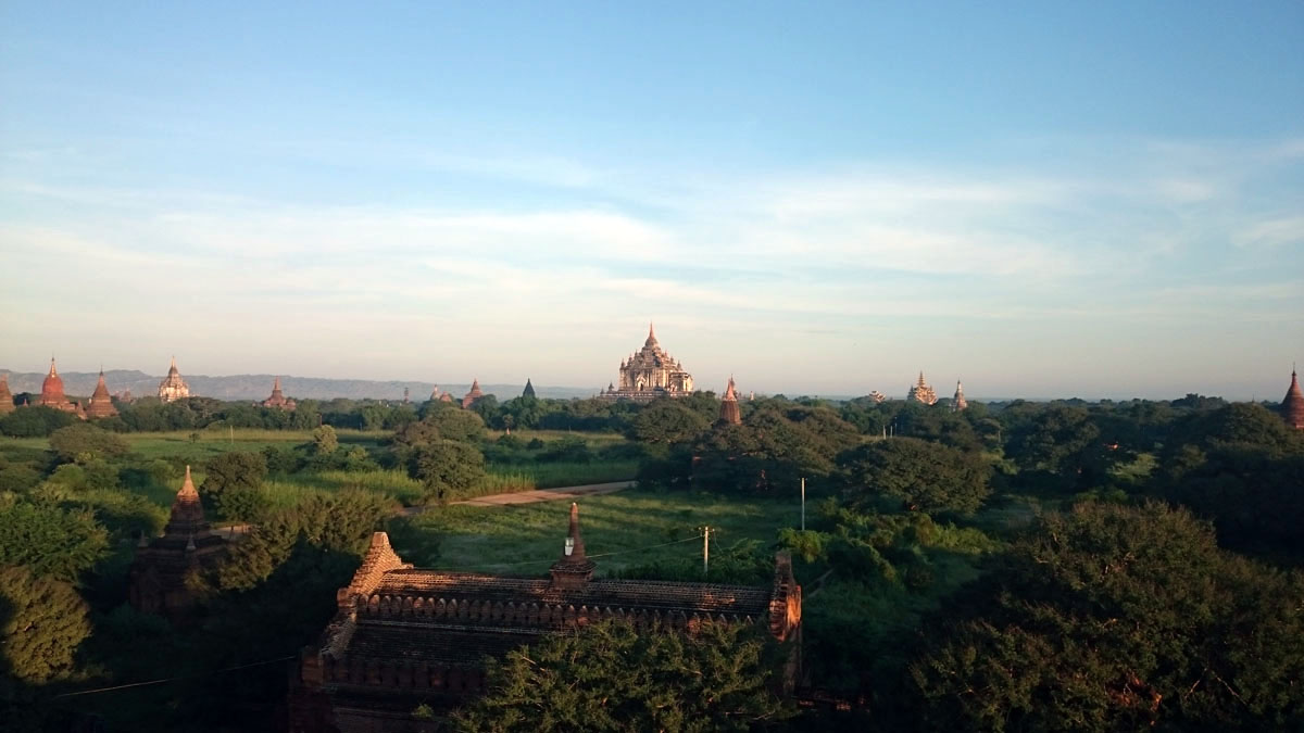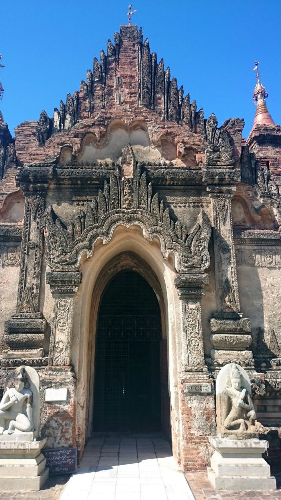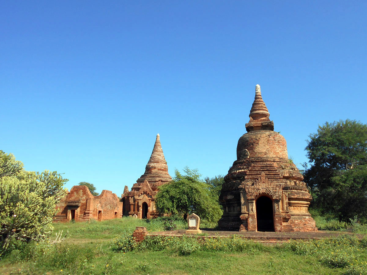 Egy iránytaxi (pick up) platóján jutottunk el a szállásra, mivel az ökrös szekér túl lassúnak tűnt. Út közben csak kapkodtuk a fejünket a semmiből előbukkanó, egymáshoz nem nagyon hasonlító templomok láttán. A burmaiak a XI. század elején, miután áttértek a hindu vallásról a buddhizmusra hatalmas építkezésbe kezdtek, sorra építették égetett agyagtéglákból templomaikat, pagodáikat, melyek a belső falait gyönyörű freskókkal díszítették és természetesen rengeteg Buddha szoborral.