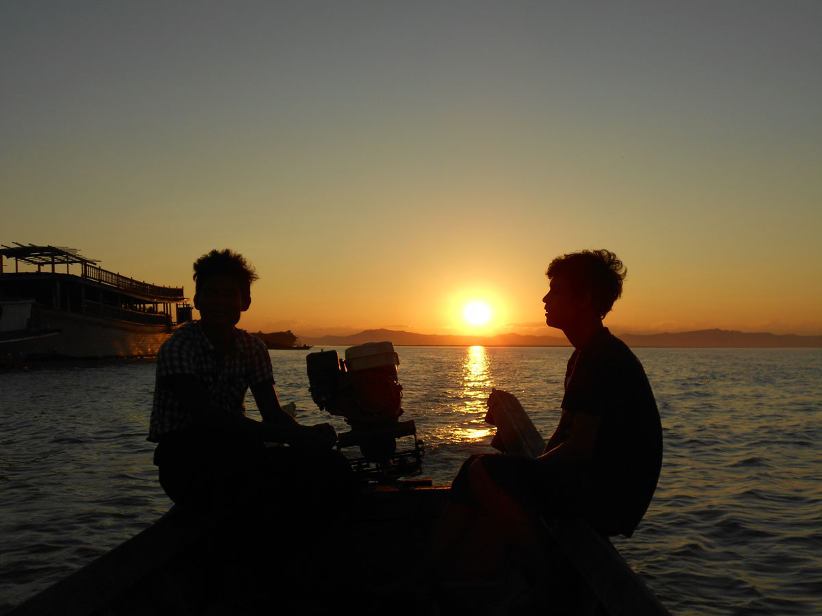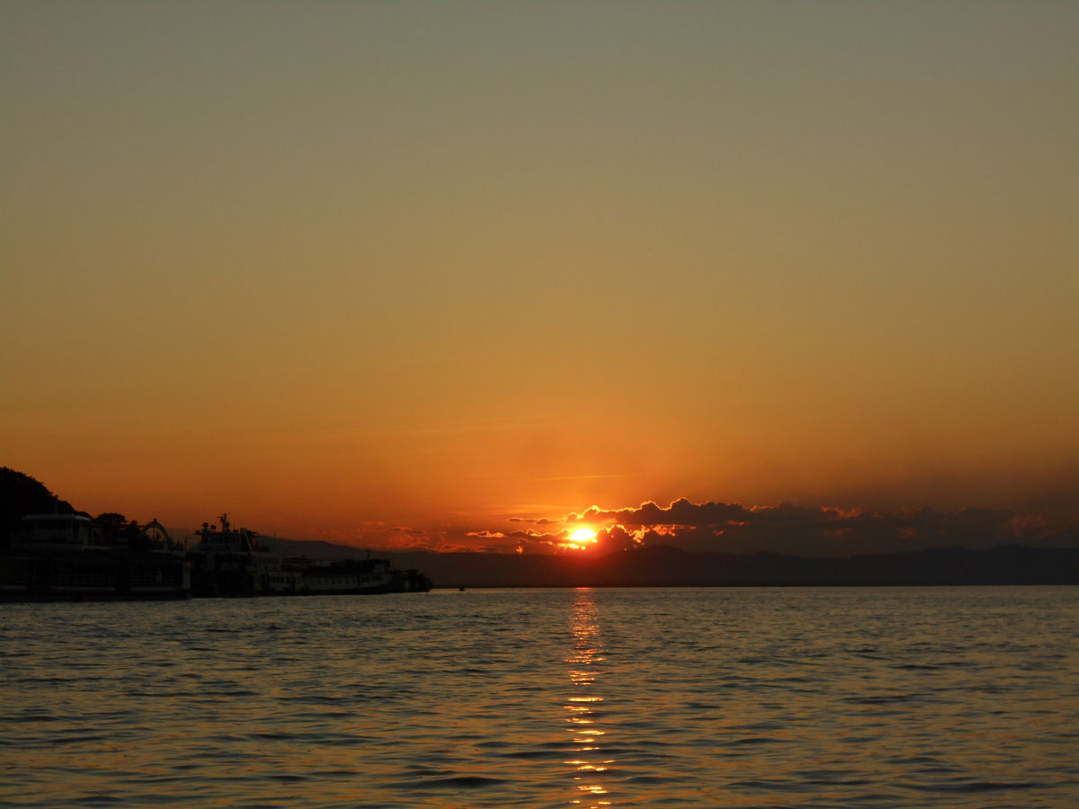Kis pihenés után késődélután lementünk Burma legnagyobb folyójának, az Ayerwaddynak a partjára, béreltünk egy csónakot, és a vízről néztük a naplementét.