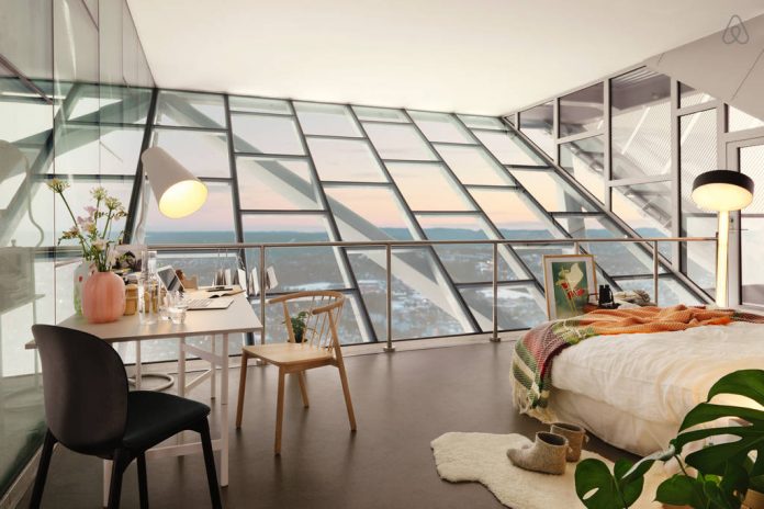 Osló egyik nevezetességének számító 64 méter magas Holmenkollen sísánc tetején, – ahol normál körülmények között síugrók gyülekeznek a versenyek alatt – egy full panorámás penthouse-lakást alakított ki az Airbnb. Az öt éve megnyitott Holmenkollen-sánc önmagában is impozáns látvány nyújt, de kétségtelen, hogy erről a szállásról nyílik majd a legszebb kilátás a norvég fővárosra.