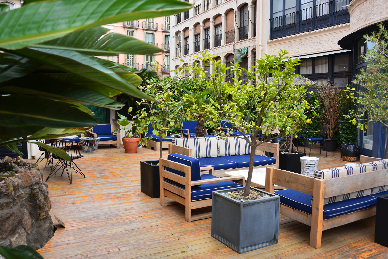 A klasszikus reggeli helyett kávét, teát és croissant fogyaszthatunk minden mennyiségben, az első emeletről nyíló télikertben. De egy csodás belső szabadtéri terasz is vár nyugágyakkal és kanapékkal, ahol nem csak reggelizhettünk, de egy hosszú városi séta után meg is pihenhettünk. A frissítő szabadtéri zuhanyzó pedig a forró barcelonai napokon üdítően hat.