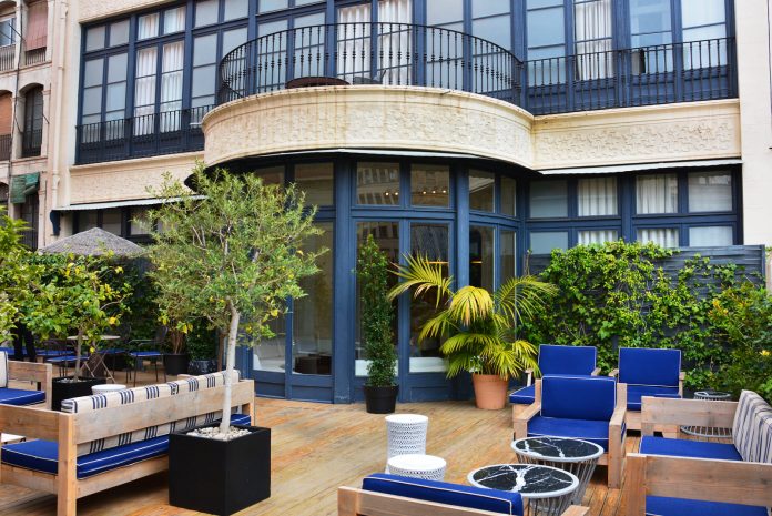 A hotelnek otthont adó 19.századi palota, a Casa Climent Arola már kívülről is igen impozáns látvány. Az épületet 2009-ben kívül-belül teljesen felújították megőrizve a klasszikus elemeket, mint az ión oszlopok a bejárt mellett és a barokk jegyeket, mint az első emeleti erkélyek. A hotel kialakítása és belső dekorációk megálmodása a nemzetközileg is elismert designer, Lázaro Rosa-Violán munkája, aki arra törekedett, hogy megőrizze az eredeti modernista elemeket. Azt hiszem ez sikerült neki, tökéletes atmoszférát varázsolt a helynek, ami tényleg kicsit visszarepít az időben.