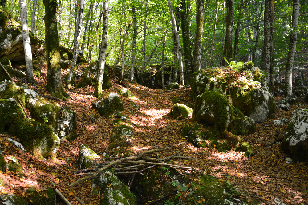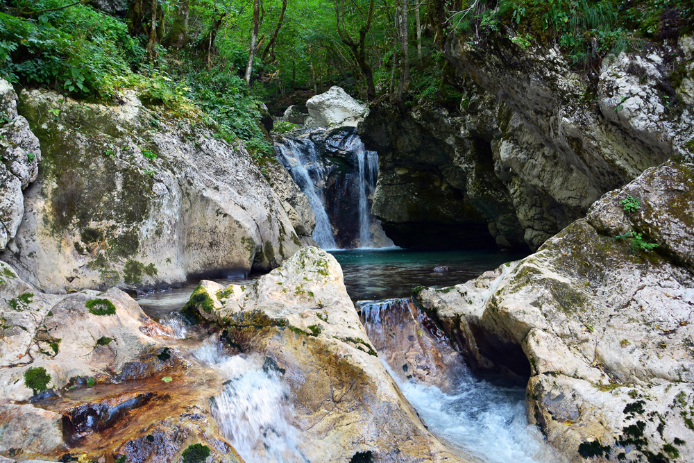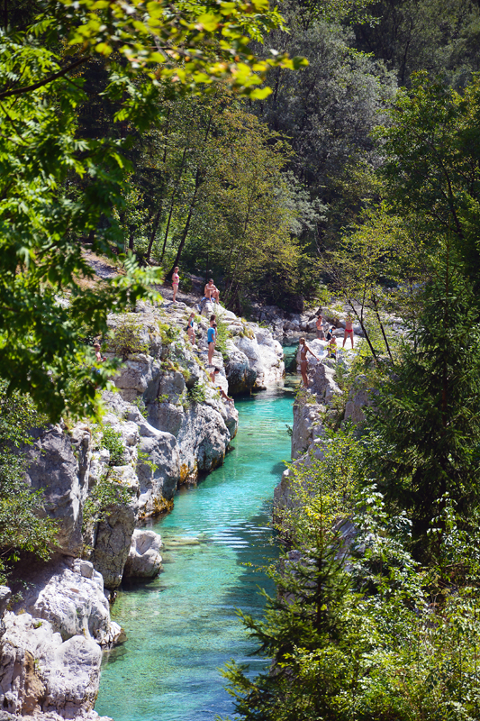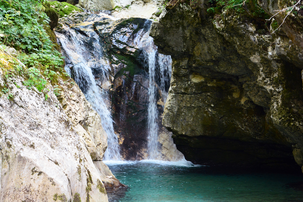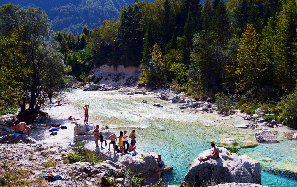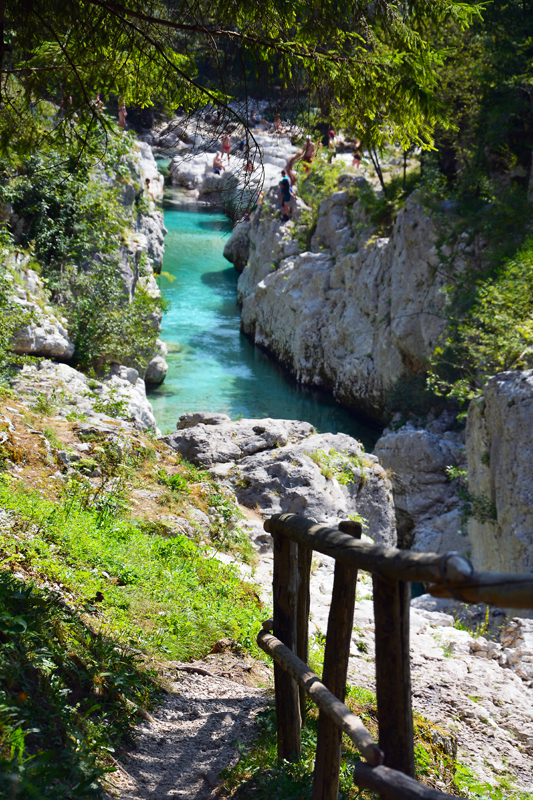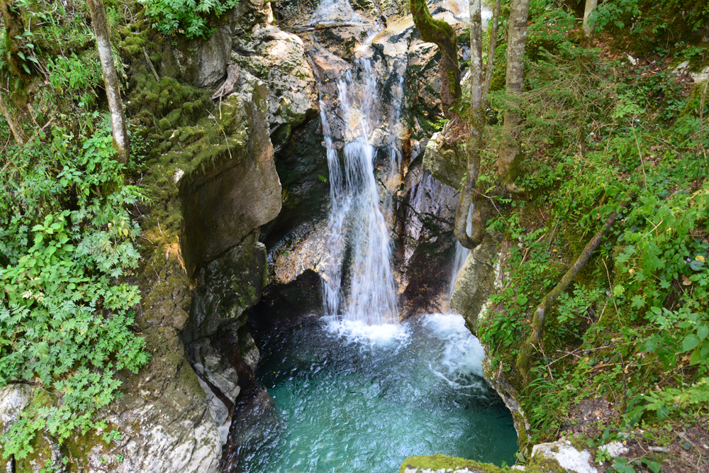 Végigsétálva a víz mentén, a túra az erdőben folytatódik tovább a Soca Ösvényt követve. Néhány kilométert megtéve a szűk betonúton elérjük a mohás köveken csörgedező Sunik patakot, mely sok kisebb-nagyobb zuhatagot hozott létre mélyen az erdőben.