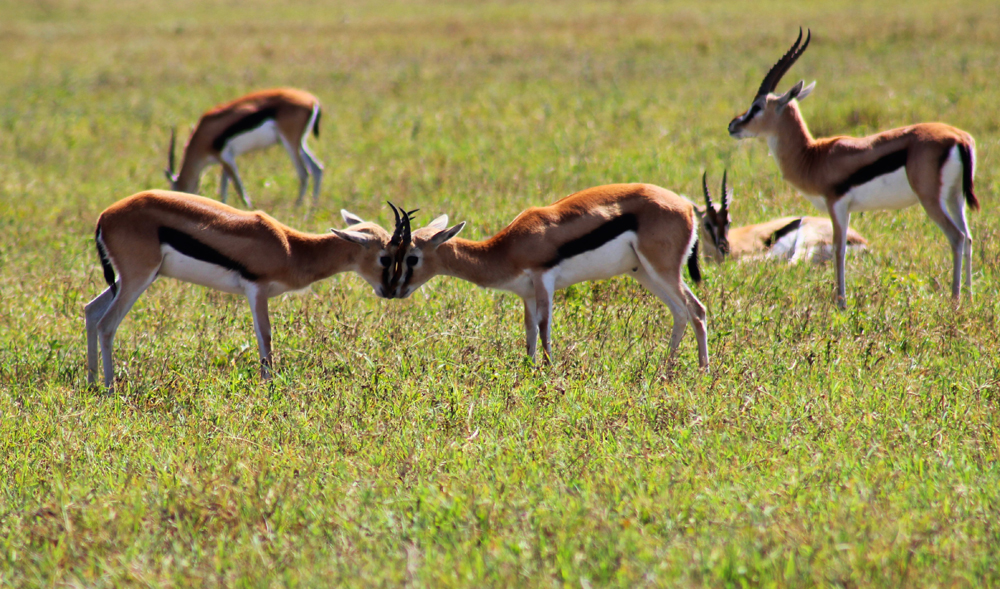 Az élet-halál harchoz szokott zebrák, Thomson-gazellák és antilopok látszólag békés nyugalomban legelésznek a nagyvadak szomszédságában. Anyjuk mellett ficánkolnak a még pelyhes szőrű zebracsikók, kéjes élvezettel porfürdőznek az elefántok, tisztes távból, bizalmatlanul méregetnek minket az orrszarvúk, a vadles első számú kedvencei azonban vitathatatlanul az oroszlánok.