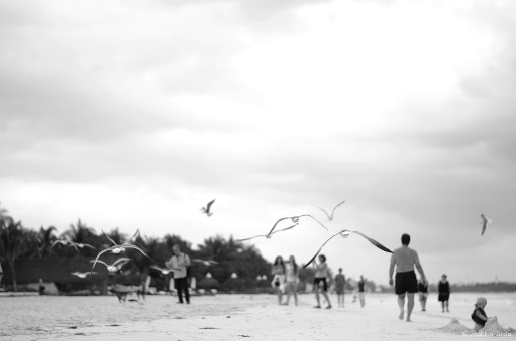 A Riviéra Maya part menti fehér homokos strandján a Karib-tenger, illetve az Atlanti-óceán türkizkék színe ámulatba ejtő és magával ragadó látványt kelt. Cancúnban ottlétünkkor – márciusban is – rendkívül kellemes volt az időjárás, bár esőre minden évszakban lehet számítani. A trópusi eső azonban kifejezetten jól esik a nagy melegben, viszonylag hamar elvonul, csodálatos szivárvánnyal társul és esőcseppjeivel csillogóvá varázsolja a trópusi növényeket – élénk színű virágokat, pálmafákat, bambuszokat.