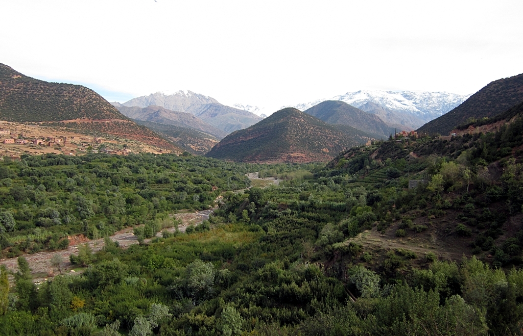 Első utunk mindössze a közeli benzinkútig tartott, mivel teletankolás után észrevettük, hogy egy 10 forintos lyuk tátong a benzintankon, így felhívtuk az amúgy neves autókölcsönzőt egy új jármű reményében, de ők értetlenkedve kérdezgették a telefonba, hogy ezért minek új kocsi, csak annyi a dolgunk, hogy nem tankoljuk tele az autót, hanem csak a lyukig. Hiába erősködtünk, nem voltak képesek azonosulni a problémával, és nem voltak hajlandóak kicserélni az autót. Miután letettük a telefont és nem láttuk értelmét a további hívásoknak, az Atlas hegység felé vettük az irányt Imlil városába. A szállás kereséssel nem sokat kellett vesződni, mert amikor megálltunk az út mentén, hogy csináljunk pár képet a kanyonról, a semmiből mellettünk termett egy ember, hogy csinál rólunk fotót, mert ők ott helyileg ennyire nagyon barátságosak…ja és mellette épp van neki néhány kiadó szobája, ha gondoljuk. Persze utána még megálltunk fényképezni néhány helyen, és érdekes módon mindig odakerült valaki a semmiből, akinek épp volt egy kiadó szobája, de már úgy voltunk vele, hogy nem diszkvalifikáljuk a korábbi nyertesünket.