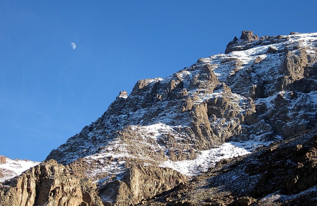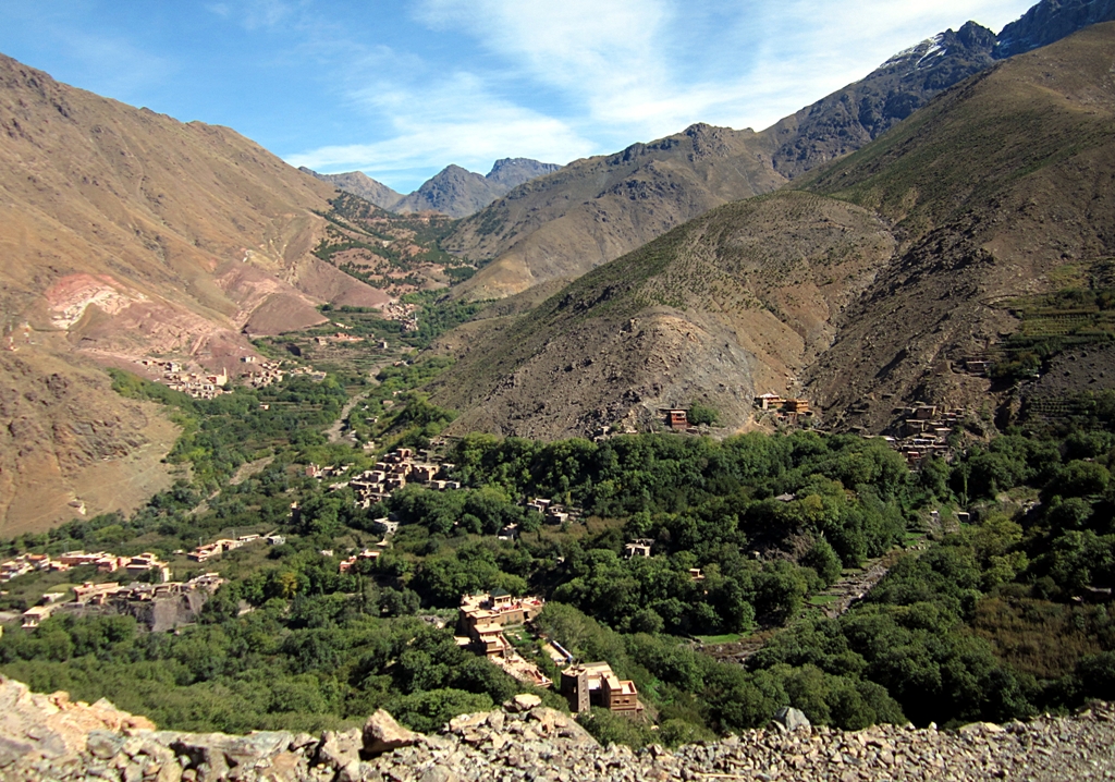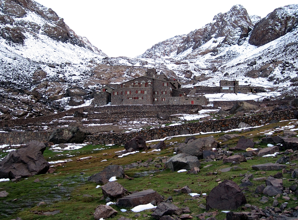 Az igazi célunk az ideúttal az volt, hogy megmásszuk a Toubkal-t, – Marokkó legmagasabb csúcsát – ami állítólag a legkönnyebben megmászható négyezres csúcs, így másnap hajnalban sátorral, ruhákkal, ételekkel, 25 kilós táskákkal (mivel nem számítottunk semmi civilizációra odafent) megindultunk a 3207 méteren levő táborhoz. A végén sajgó lábakkal, oxigénhiányosan, táskáktól leszakadó vállakkal értünk fel a gyönyörűen felújított, alpoki minőséget idéző vendégházhoz (negyedik európai nyom).