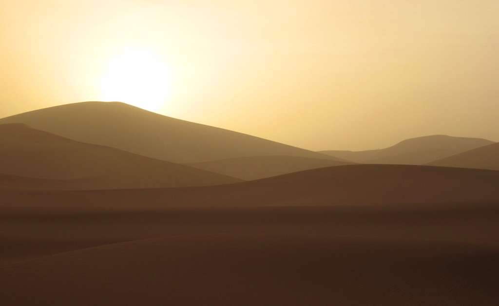 Gyorsan elfogyasztottuk ezt a fehérjedús ételt, majd felmentünk a szomszédos, 300 méter magas homokdűnére, hogy ott kapjuk el a napfelkeltét, és bár még mindig az éjszakai látkép volt a retinánkba égve, azért, ha éjjel nem kellett volna felkelni (köszönet érte a természetnek, hogy a megivott víz nagy százalékának távoznia is kell valahol), valószínűleg most az a látvány lenne az első az élmények között, ami akkor fogadott minket, amikor felbukkant a nap a sárga homok felett.