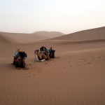 Merzougaban próbáltunk túravezetőt találni, ami szintén könnyebb feladatnak bizonyult, mint gondoltuk volna, mivel rögtön az első háznál lestoppoltak minket, hogy egészen véletlenül ők szerveznek túrákat. Sajnos időnk nem nagyon volt variálni és más túravezető után nézni, mivel mindössze egy esténk volt lebonyolítani a sivatagi kiruccanást, de valószínűleg olcsóbban is megúszhattuk volna, ha egy kicsit akadékoskodunk, és minimum 3x eljátsszuk, hogy otthagyjuk a házát, de sajnos szorított az idő és már kezdett lemenni a nap is, így beleegyeztünk az összegbe. Cserébe pár perc múlva már jött is a jeep értünk és megindultunk a sivatagba, mert kb. 60km-t kellett autózni, hogy elérjük a dűnéket (Egg Chiregi).