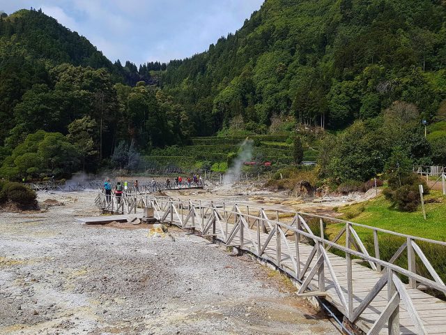 A legaktívabb vulkanikus része a szigetnek a Caldeiras, ahol tűzforró víz bugyog a föld alól. Itt testközelből is láthatjuk milyen lehetett ez a vulkanikus sziget kialakulásakor, hatalmas gőzoszlopok törnek az ég felé, a levegőben pedig jellegzetes kénes illat terjeng. A föld alatt, hatalmas üstökben főzik a sziget specialitását, a Cozido das Furnast, mely egy húsos, ízletes egytál étel.