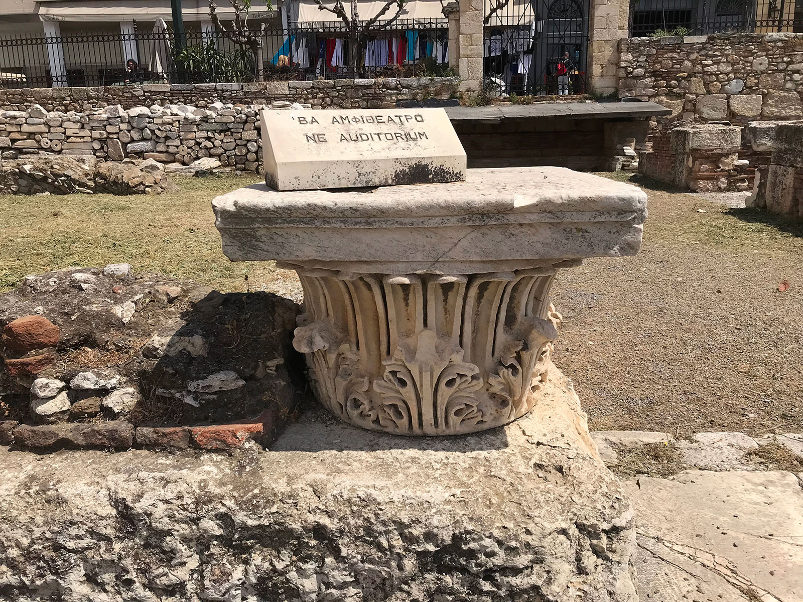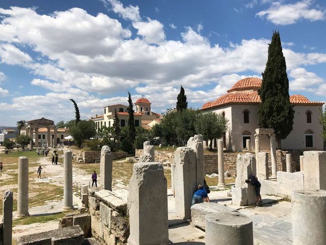 A Monastiraki tér szomszédságában találjuk a Római kori piacteret, mely sokkal kisebb és még ma is feltárás alatt van, hogy kiderüljön pontosan, milyen épületek álltak itt annak idején. Az agora szomszédságában pedig egy másik híres épület romjai tekinthetők meg, ez pedig nem más, mint Hadrianus könyvtára. A phrügiai márványból készült épületből ma már csak néhány oszlop és egy falrész látható, de a Kr. u. 132-ben épült könyvtárban voltak olvasó- és előadótermek is.