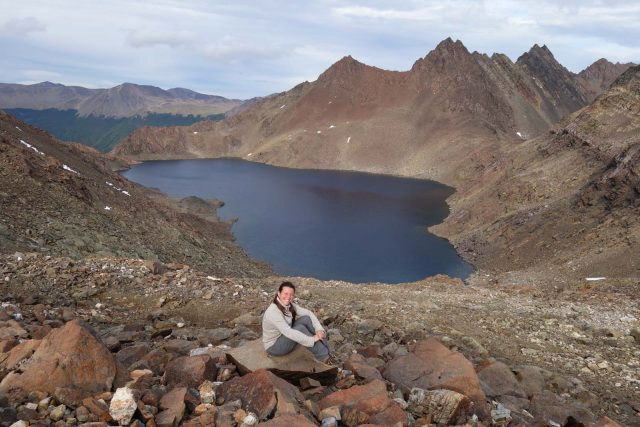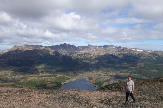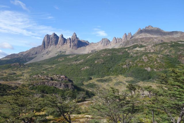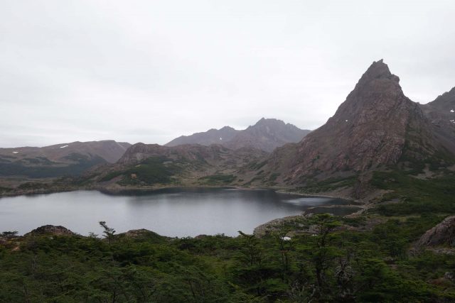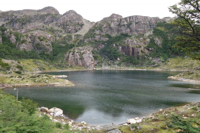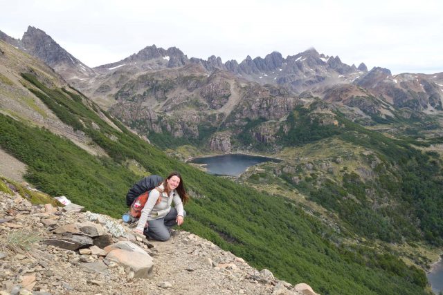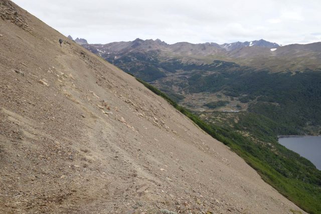 Ezután útba esett egy patak, ahol a hosztelben előző este megismert német és amerikai férfival találkoztam. Együtt folytattuk utunkat. Az amerikai visszafordult inkább, mert a hegy igen meredeknek bizonyult, keskeny túraútvonallal és előző este elég sok bort megivott. Végül a német férfi – aki idősebb volt már, de igen fitt – lett a túratársam. A hegy oldaláról csodálatos kilátás nyílt a Dientes de Navarino (vagyis magyarul a Navarino “fogaira” – ugyanis a hegycsúcsok fogakra hasonlítanak) csúcsaira és a völgyben elterülő tavakra.