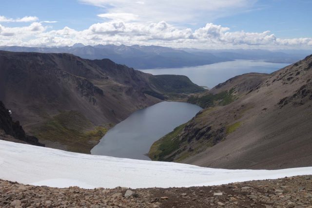 A túloldalon a türkiz színű Betinellit láthattuk egy másik kisebb lagúnával. A messzeségben feltűnt a Windhond-tó is, ahova éppen tartottunk. Ez a túra a Dientes de Navarino körön kívül esik és plusz 13 km-t jelent, amit visszafelé is meg kellett tennünk.