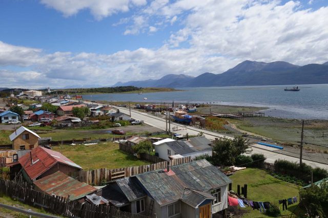 Már a punta arenasi repülőtéren is furcsán nézett rám az egyik srác. Kiderült, hogy mi már találkoztunk valahol… sőt, együtt szilvesztereztünk és ünnepeltük a szülinapomat egy hosztelben Puerto Varasban. Elég sokan voltunk ott az év utolsó éjszakáján, így nem igazán rémlett egyből, hogy honnan is ismerjük egymást. A gép landolása után vártuk a feladott poggyászt, de a reptéren nem volt futószalag. Először a neveket kiabálták, aztán végül mindenkit beengedtek a kis helyiségbe, ahol megkerestük a csomagjainkat. Mivel taxizni nem akartunk, így inkább a 3,5 km-es séta mellett döntöttünk. Már útközben feltűntek a Dientes de Navarino hegység csúcsai. A nap hét ágra sütött, a szél se fújt. Rossz időre számítottam, mert ezt a térséget a chileiek is úgy emlegették nekem, hogy az időjárás szinte kibírhatatlan lesz. Ehhez képest sokkal szebb idő köszöntött, mint Punta Arenasban. Újdonsült régi ismerősöm már indult is a hegyekbe, így egyedül indultam a városközpont felé.