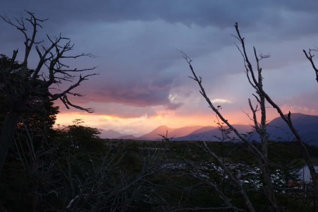 Végül elértük az utat, 10 perc után jött is egy kamion, amit lestoppoltunk. Visszamentünk a hosztelbe, Puerto Williams egy csodálatos naplementével búcsúztatta a napot és koronázta meg az 55 km-es gyalogtúrát.
