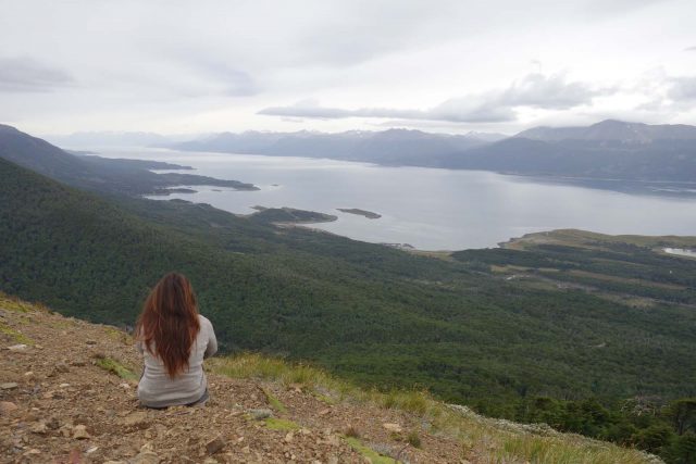 Másnap reggeli után, kissé borús időben nekivágtam a 6 naposra tervezett túrának. A várost elhagyva a Plaza de la Virgen nevű parknál vitt az út balra a hegyek felé. Egy kisebb vízesés is útba esett. A túraútvonal bejáratánál balra egy hosszabb, jobbra pedig egy meredekebb út vezetett fel a Cerro de la Banderához. Én az előbbit választottam. Útközben érdekes Lenga bükkerdőben sétáltam, majd gyönyörű kilátásban volt részem Puerto Williamsre, Ushuaiára, a Beagle-csatornára és a túloldalán húzódó Darwin-hegységre.