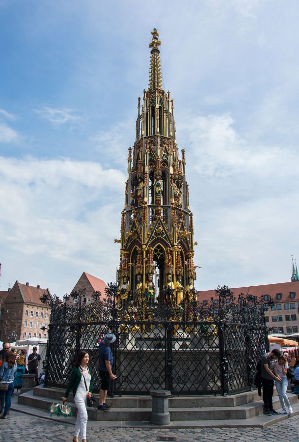 Átsétálva a Museumsbrücke kiérünk a város egyik legszebb terére, a Hauptmarktra, ami nem csak hétvégi vásárai miatt népszerű, de itt rendezik meg minden év végén a híres Nürnbergi karácsonyi vásárt, mely kétségtelenül Európa egyik leghangulatosabb karácsonyi vására, ezt mi magunk is megerősíthetjük.