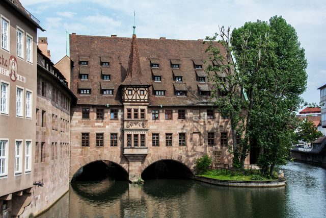 Nem messze innen a Museumsbrücke jobb oldalán feltűnik Nürnberg egyik legikonikusabb épülete, a Pegnitz folyó fölé benyúló Szentlélek kórház (Heilig-Geist-Spital). A folyó partján álló épületet 1332-ben alapították, a középkor egyik legnagyobb ispotálya volt. Érdekesség, hogy közel 350 éven át a Német-római Birodalom uralkodói ékszereit inkább tartották itt, ezen a helyen, mintsem a nürnbergi várban. Az egykori híres kórház napjainkban öregek otthona és népszerű étterem egyszerre.