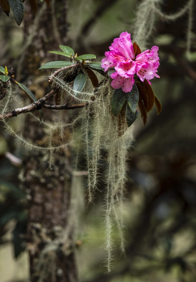 Leparkolunk egy teaházban. A tea kitérő után egyre magasabbra tartunk, egy kicsit kitett (érts picsa nagy szakadék melletted és az út amin állsz nem annyira széles), de lélegzetelállító úton. Hatalmas mély völgyek alattunk, felfelé egy kopár hegy, amit színes virágok pöttyöznek. Fel és le, fel és le, nepáli flatben haladunk. Egy hosszabb felfelé tetején nepáli kecskék pózolnak nekünk a sziklaperemen, majd egy szexin letisztult terepen megtett sok fel és sok le után megállunk egy cuki helyen ebédelni.