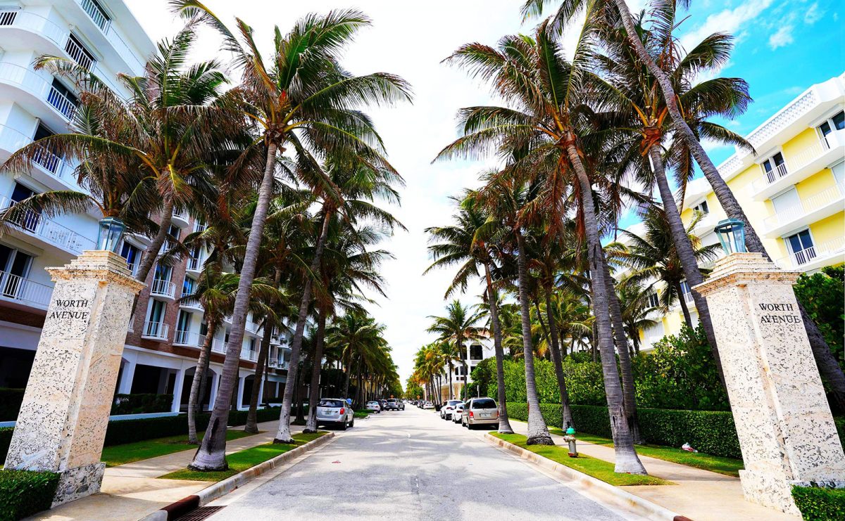 A pálmafákkal szegélyezett Worth Avenue egy elbűvölő bevásárlónegyed, hangulatos, díjnyertes éttermekkel, színes virágkölteményekkel, a fák törzsére ültetett orchidea-csodákkal, ahol drága designer üzletek, művészeti galériák, pompás ékszerboltok kirakatai váltják egymást. Az építészetet kifinomult spanyol hatás jellemzi, a házakat Addison Mizner tervezte az 1920-as években.